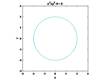 1 | ezplot('x^2+y^2-4',[-3,3,-3,3]) |