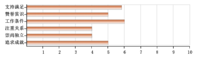 赞誉赏识:对职业的追求,是能够使自己获得充分的领导力提升机会,并拥有充分的权威,能够对他人的工作提供指导,并且这个职位是富有社会声望的
