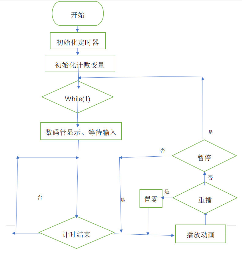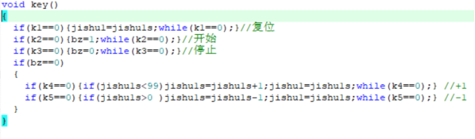 可以看出,key()函数的主要作用就是通过读入按键的信息,改变全局变量的值,在数码管例程中,它的作用是改变数码管的值,那么我也可以把它们应用到动画播放当中,从而实现动画播放当中的控制,包括暂停,重播等等。与倒计时配合,可以达到预期效果。
