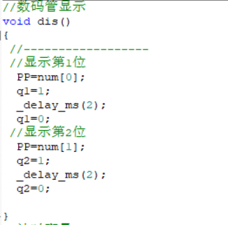 倒计时部分 主要函数为display()、dis()、key() 分别的作用是:获取数码管显示的数字信息、进行数码管显示、读取按键内容。