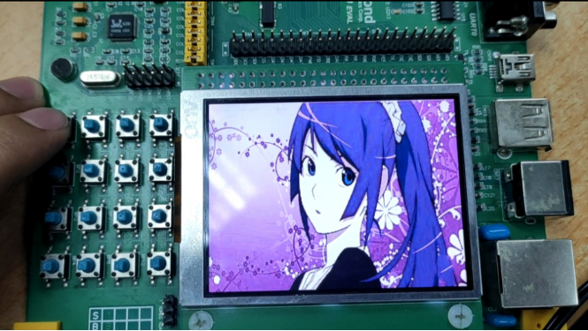 编写LCD 程序: a.在LCD上显示一张图片; b. 在LCD上显示多张图片,加入键盘按键功能,制成电子相册,用键盘按键翻页循环显示; c.在LCD上显示一张动态图片(GIF图)。