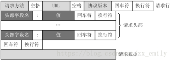 HTTP的请求报文包括:请求行(request line)、请求头部(header)、空行 和 请求数据(request data) 四个部分组成。