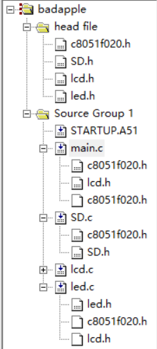 指定输入文件夹和输出文件夹就能得到合并后的bin文件,将后缀名改成mmc即可。在工程文件中gf3.mmc是用软件合成的完整文件,gf4.mmc是4个gf3合成的结果,播放时间更长。 而对于新的单片机,需要采用新的读卡方式,但是最终仍然要落在读取字节信息上面,合成对应的二进制文件仍然是必不可少的。 之前例程中也是采用SPI总线方式读取SD卡,我也在网上找到了相应的C8051F020单片机读写SD卡的例程,以此在后续编写新的程序。