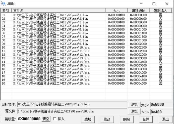 在网上找到了一个可以合并bin文件的软件(附在作业中),直接运行即可: