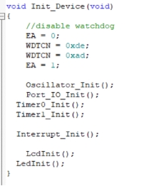 之前各种模块的初始化都是直接放在主函数里面,这样安排没有条理,代码可读性差,和例程学习将所有的初始化函数放到一起命名为Init_Device,如图所示: