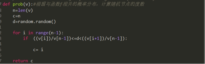 prob(v):根据与函数f相关的概率分布,计算随机节点的度数