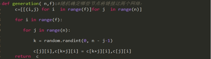 generation( n,f):随机确定哪些节点将链接这两个网络: