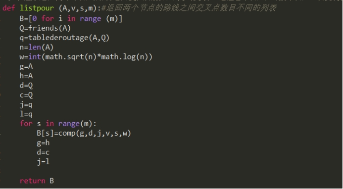 listpour (A,v,s,m):返回两个节点的路线之间交叉点数目不同的列表
