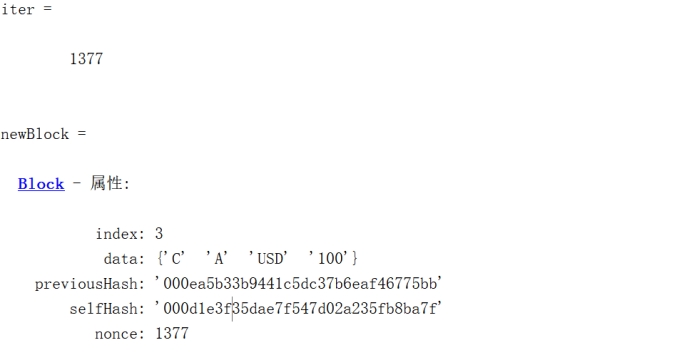 可以看出执行到第1377次遍历时才得到前三位都为0的哈希值。