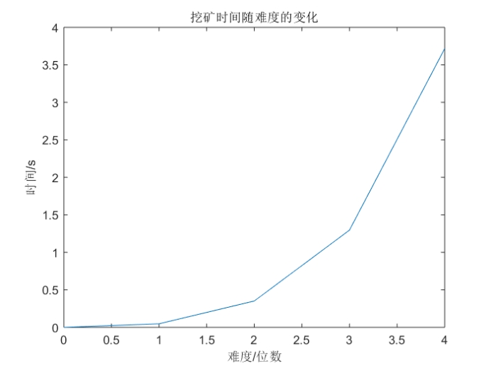挖矿时间随难度的变化