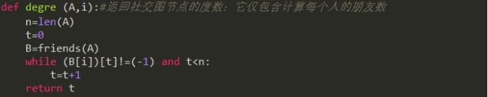 degre (A,i):返回社交图节点的度数:它仅包含计算每个人的朋友数