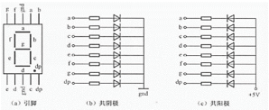 一位数码管的引脚是10个,显示一个8字需要7个小段,另外还有一个小数点,所以其内部一共有8个小的发光二极管。对共阴极数码来说,我们给数码管的任一个阳极加一个高电平时,对应的这个发光二极管就被点亮了。如果想要显示数字8,并且把小数点也点亮的话,可以给8个阳极全部送入高电平,依次类推,就可以控制数码管的显示。