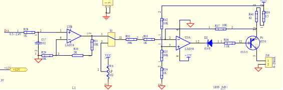 每个C805 1F020/1/2/3器件都有两个片内12 位电压方式数/模转换器(DAC)。每个DAC的输出摆幅均为0V到(VREF-ILSB),对应的输入码范围是0x000到0xFFF。可以用对应的控制寄存器DACOCN和DACICN允许/禁止DACO和DAC1。每个DAC都具有灵活的输出更新机制,允许无缝的满度变化并支持无抖动输出更新,适合波形发生器的应用。其中使用方式有两种:根据软件命令更新输出、基于定时器溢出的输出更新。在本实验中使用第二种方式,使用定时器2进行输出,具体操作将在后面调试中介绍。 下面是信号发生器的硬件电路: