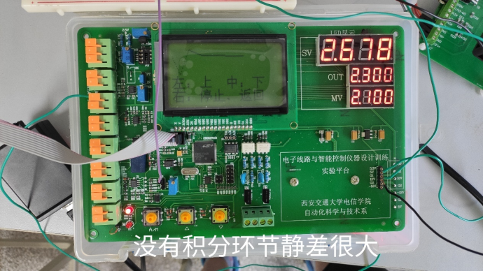 积分环节能够起到消除稳态误差的作用,但是如果积分环节过大,会破坏系统的稳定性,出现较大的超调和震荡,应该将积分环节调节到几乎没有超调且没有静差。