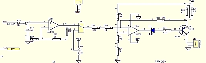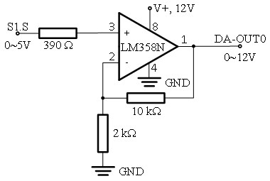 实验板输出电压0~5v不能驱动控制对象,需要用放大电路放大信号。