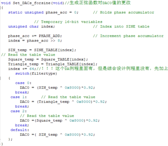 对于我的工程来说,使用定时器2,直接对DAC0写入,所以控制字写入0x98即可达到效果,而我尝试使用定时器4,发现数码管会发生肉眼可见的闪烁,这应该与定时器的周期有关,所以在使能时关掉了定时器4,中断中也没有使用定时器4的功能。