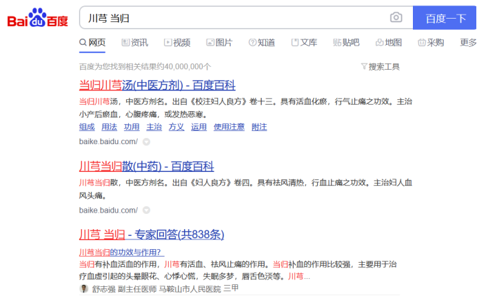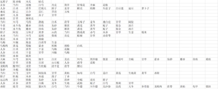 我们也注意到,在挖掘出的关联规则中,经常出现的中药材有甘草、人参、当归、白术、白芍、川芎等等,我们搜索中药方中最常用的药材: