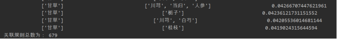 选取prescription.csv药方数据(2万余条),最小支持度和最小置信度都为0.01