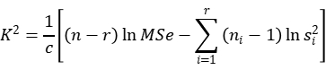 假设有r个分组,每组的标准差为S12,S22,Sr2由这些标准差还可以计算出MSe,统计量K2近似服从r - 1的卡方分布。