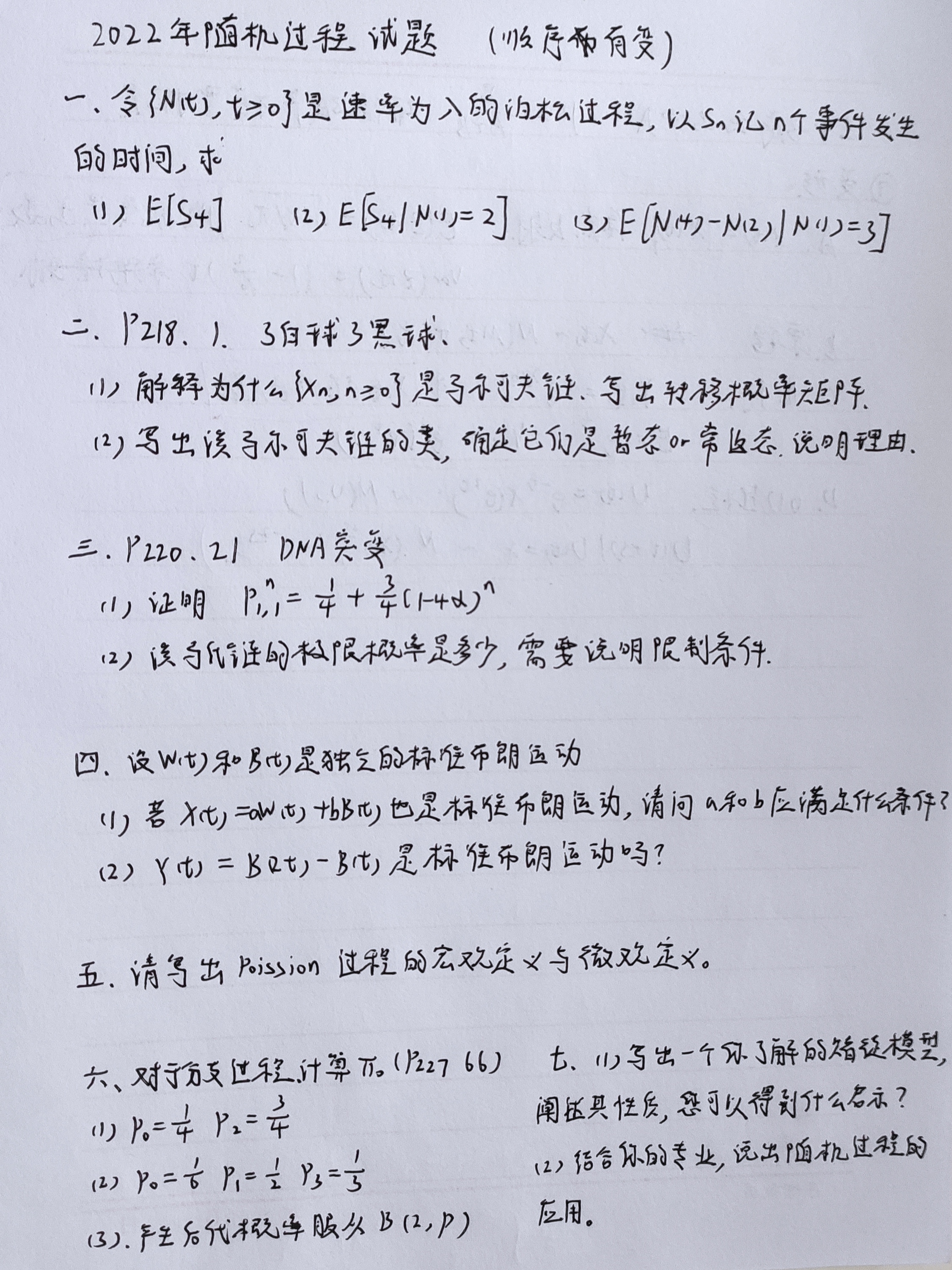 2022-04-18 随机过程 全文共: 39字 | 阅读时长: 1分 知识整理研究生课程 阅读 研一下随机过程考试题回忆版 这是换老师的第一年,题很简单都是原题,估计也就仅此一回了。 < 英语小班实践 机器学习 >