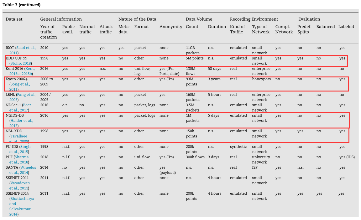 对于我们来说这几个属性都很重要,尽量选年份近一些的更贴近现实,保证可用。最重要的是有明确标注正常行为和攻击行为的ground truth。