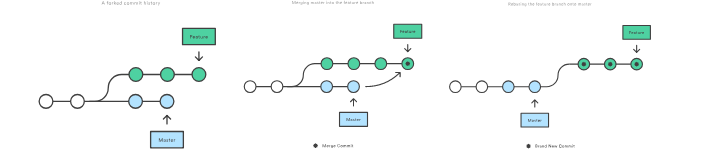 merge,会产生一条无用的合并记录,比较影响查看历史,使用rebase则不会。