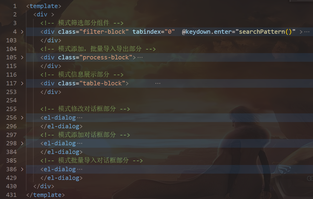 **/大的模块在前面使用此方法进行注释: