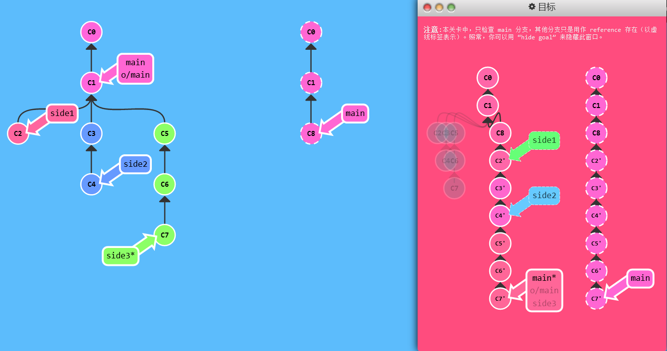 side1side2和side3- 我需要将这三分支按顺序推送到远程仓库