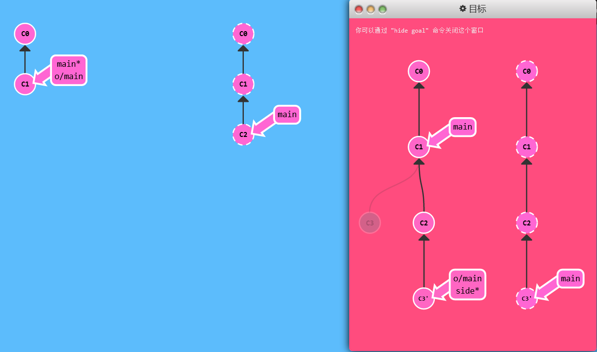 1 | git checkout -b side o/main # git checkout -b side; git branch -u o/main side |