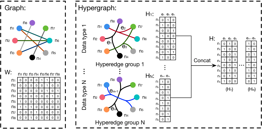 使用超图的灵活性超边很容易扩展到多模态和异构数据表示: